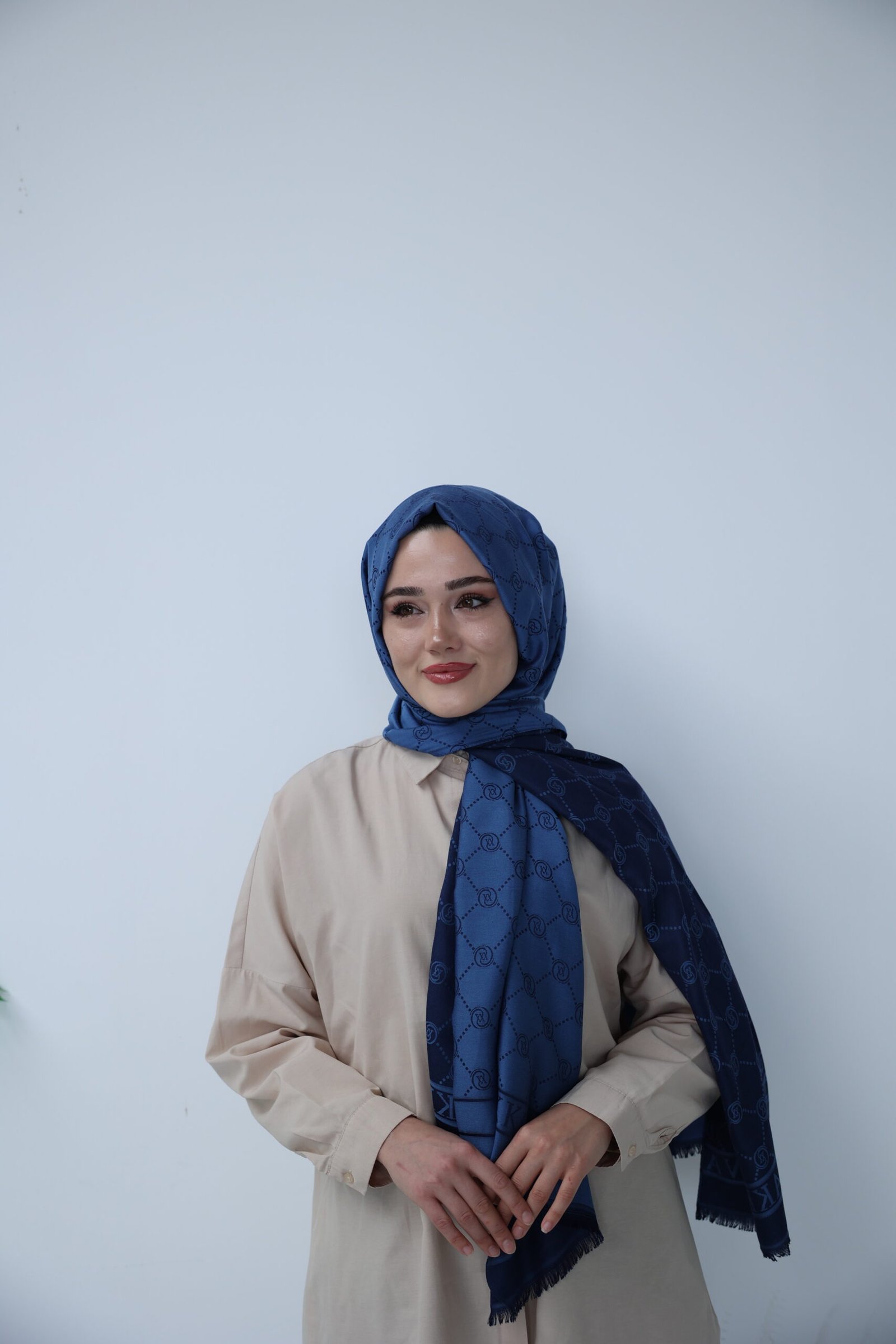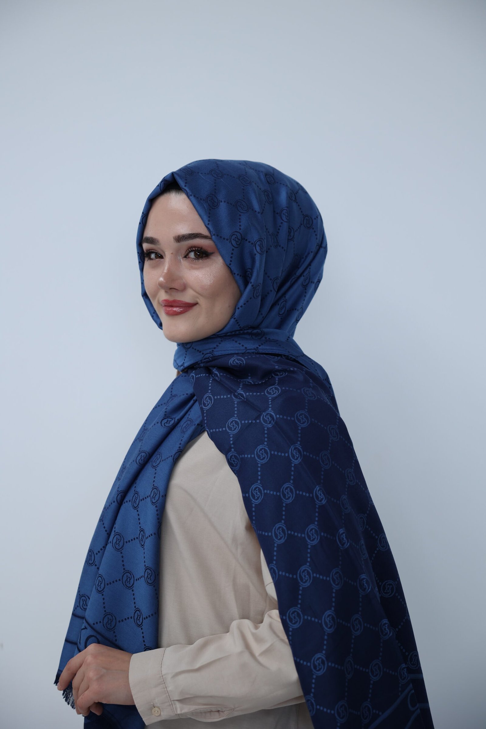 Vakko Desen Jakar Şal – Monogram Serisi Lacivert